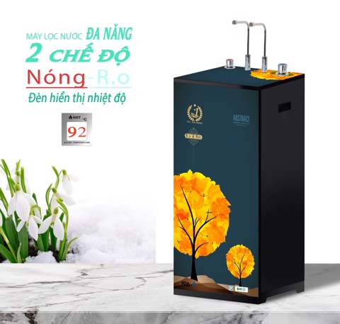 Máy lọc nước RO 2 vòi (1 VÒI NÓNG + 1 VÒI NƯỚC NGUỘI) có 9 lõi có kiểu dáng sang trọng, dễ dàng bố trí ở nhiều không gian trong nhà. Thân máy làm bằng tôn sơn tĩnh điện và mặt kính cường lực chống oxy hóa, cứng và giúp máy bền đẹp. Máy lọc nước có thể lọc được nguồn nước mưa, nước giếng, nước sông, nước nhiễm phèn,… giúp bạn thuận tiện hơn khi sử dụng.
